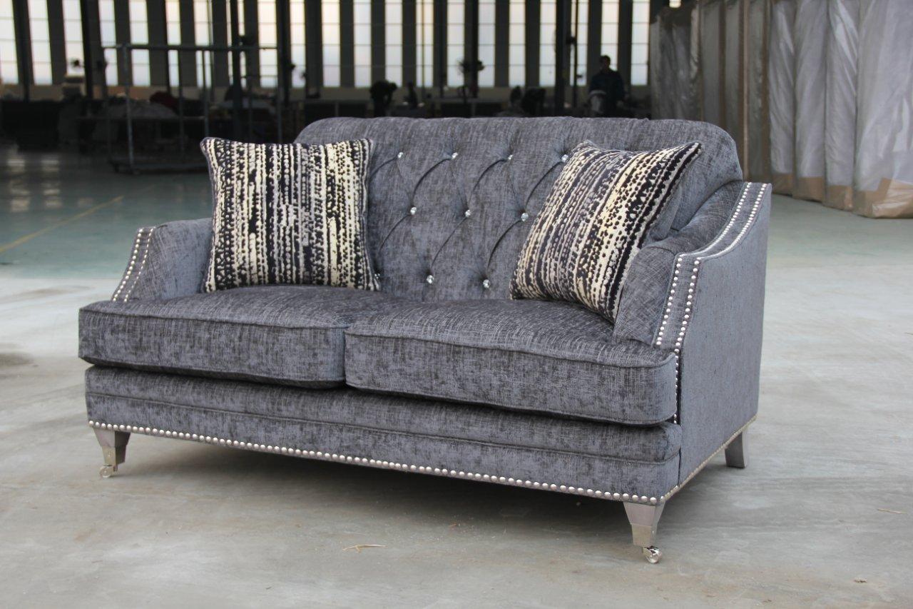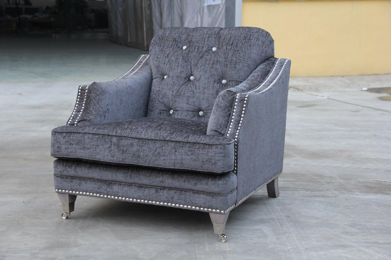 Charcoal Chenille Fabric sofa, chesterfield back cushion, Crystal Button, Cup wheel feet.